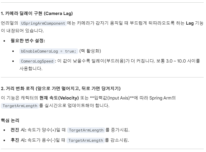 // 3. FInterpTo를 사용하여 부드럽게 거리 조절