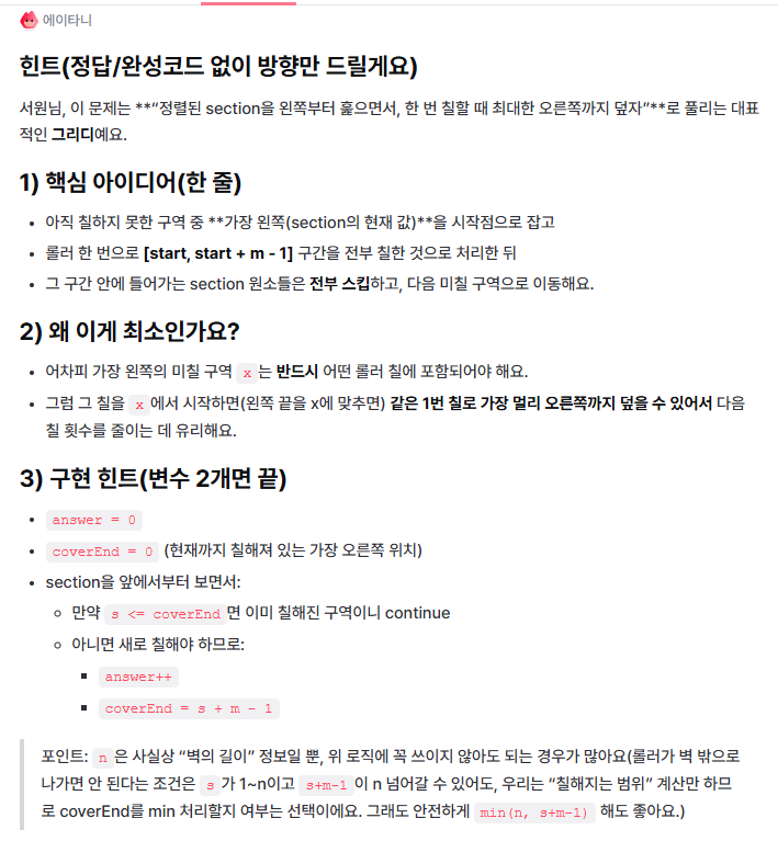 int solution(int n, int m, vector<int> section) {
